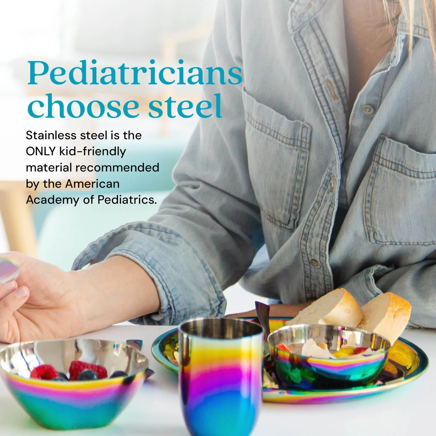 When it comes to plates and bowls, the main decision is between stainless steel, glass, or porcelain. While glass and porcelain look great, they’re not exactly kid-friendly—especially when little hands are prone to dropping, throwing, or finding new ways to break things. My kids basically operate as agents of entropy, even when they’re trying to behave. That’s why I prefer stainless steel.